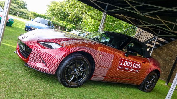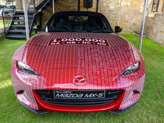 Van ok hát ünneplésre, ezért a Mazda hirtelen jött elragadtatottságában elvitt bennünket Goodwoodba, ahol – komolyan nevezett historikus versenyautó és kerek évfordulók híján (bár azért ne feledjük, idén 25 éve nyertek Le Mans-i 24 órást a Wankel-motoros 787B-vel) - most csupán két fontos dolguk akadt: az európaiaknak is végre testközeli tapinthatóságba hozni a motoros keménytetővel szerelt, kupé-targa MX-5-öst, az RF-et, illetve megünnepelni az egymilliomodik roadstert.