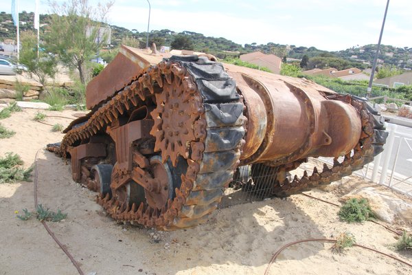De a tanknak is elég sok alkatrésze hiányzott, egy részét megette a rozsda, más részét láthatóan lángvágókkal kaszabolták le a teknőről. Ahogy egy második világháborús témákkal foglalkozó fórumon olvasni lehet, jó eséllyel az amerikai hadsereg 191-es Harckocsizó Zászlóaljának egyik járművét találták meg a Dél-Francia tengerpart homokjában. Hogy ez a tank egy DD (Duplex Drive), azaz kétéltű Sherman volt-e? Azt mondják, 99 százalék a valószínűsége, hogy egy a partra sikeresen kiúszó, speciálisan kialakított Sherman maradékait nézheti meg bárki, aki a Sainte-Maxime mellett teljesen véletlenül felfedezett roncsot megtalálja a parkoló mellett. Nincs kitáblázva, nem könnyű észrevenni a Nartelle-i strand mellett a földből kiálló emlékművet, de itt a google-kép, aki arra a jár, így már egyszerűbben rátalálhat.