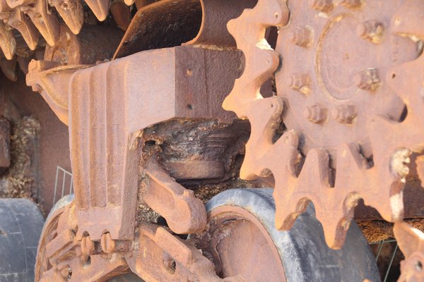 Az látszott, hogy ebben a drasztikus tómegcsökkentésen átesett páncélosban nem a Continental-féle R975 jelű csillagmotor dolgozott rövid élete során – a repülőmotorokra hasonlító és azokkal rokon léghűtéses dög helyett egy még érdekesebb blokk hajtotta. Már ha ezt a fura szerkezetet lehet motorblokknak nevezni. Sok évvel ezelőtt Andróczi Balázs megemlékezett a Chrysler Multibank motorról, ami egy olyan hajtómű, ami gyakorlatilag hat darab, soros hathengeres benzines autómotor összelegózásával vált harckocsi mozgatására is alkalmas műszaki kényszermegoldássá. Jól látszanak a hengerfejek, a csúnyán elkorhadt vízhűtő lamellái, semmi kétség, ez nem a kilenc hengeres Continental csillagmotor. Ezt a Shermant egy harminchengeres, 21 literes szörny mozgatta. Mára már nem sok maradt belőle, de így is elég impozáns.