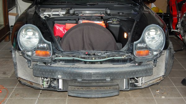 Van ugyanis egy tervezési furcsaság a hűtőknél, ami pontosan jellemző a 996-os kódú tükörtojás lámpás 911-esre is, hiszen a Boxster 986 és a 996-os eleje a szélvédőig szinte azonos a lökhárító borítás kivételével. A probléma az, hogy a két szélen elhelyezett hűtőegységre - amiben a vízhűtők és a klímahűtők vannak - egy nagy légterelő, egy óriási tölcsér viszi a levegőt a lökhárítón kiképzett nyílásokból. De nem csak a levegőt, hanem falevelet, madártollat és csikkeket, kavicsokat. Itt a sarokban aztán összegyűlik, tartja a nedvességet és kirohad a hűtő sarka.