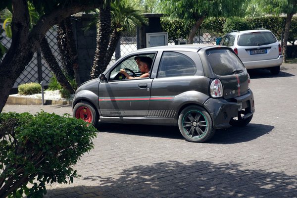 Szicília mellesleg telis-tele van helyi gyártású, már-már teherautóknak tűnő csettegőkkel. Mind fura, kemény dízel hangon vánszorog, mintha valami túlhúzott Kubota traktormotor lenne bennük (mellesleg lehet, hogy az is van), mind rogyásig túlterhelt, mind horpadt.