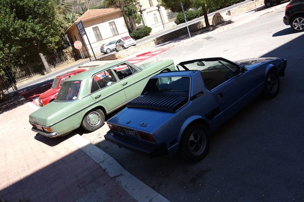 Sportosabb autót csak egyet láttam (bár egy Lancia Fulvia elsuhant szemben az autópályán), egy Fiat X 1/9-est Trapaniban. Valami régebbi autókkal foglalkozó szerviz előtt állt egy rettenetesen horpadt Fiat 500 társaságában – római, hetvenes évek végi, narancssárga betűs, fekete alapú rendszámmal. Nyammm.