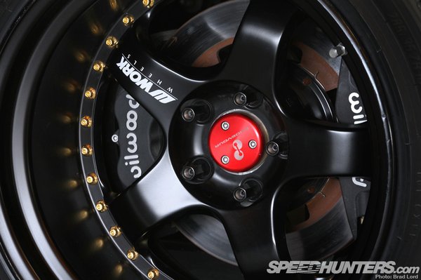 A futómű átalakított Koni gátlókat, King Springs rugókat tartalmaz, amivel kontrollálható a keresztbe menés. A megállást sem bízták a véletlenre: komplett Wilwood fékrendszer került a kerekek mögé, elöl 365 milis, hátul 330 milis tárcsákkal, elöl 6, hátul 4 dugattyús nyergekkel. Több kerékszett is előfordult az autó alatt az évek során, de ezek közül a Work Meister garnitúra volt a leglátványosabb. 18 collos átmérője nem olyan irreális, azonban az elöl 10,5, hátul 12,5 collos szélesség igencsak durva.