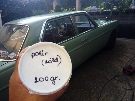 Innentől elvben már csak polírozni kellett, belső teret takarítani, a jobb padló hegesztését lefesteni. Én azért további szörnyűségekre készültem. Hét közben már kaptam egy kölcsön-polírgépet a Makitától, szerintem még ugyanazt, amivel egy évvel ezelőtt a Vasfogat egyszer már fényesítettem. Nekiláttam. Megjegyzem: a száraz 3M-es polírszer nagyon ügyes, ezzel dolgozva jól látszik, hogy mit művel a felülettel a gép, megvan a fényesedés pontja, s nincs akkora kínlódás sem. A vizes szerekkel nekem óriási kényelmetlenség az állandó spriccelési kényszer, s ott a maszat alatt nemigen tudtam, hogy áll a festés, a profiknak nyilván jobbak a módszereik, élesebb a szemük. Mondjuk úgy – én privátban, csendben most áttértem az új technikára. Vagy meg-?