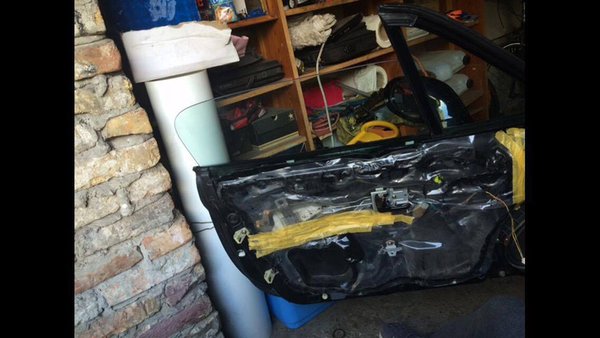 Zavart még, hogy nyitott tetővel zörög az oldalablak, gondoltam ezt otthon is orvosolhatom. Megnéztem egy Youtube-tutoriálban, hogyan kell leemelni a panelt, ott sejtettem a problémát, főleg mert amikor a párom becsukta a jobb oldali ajtót, a fogantyúnál jó másfél centit elemelkedett befelé. Leszedtem a paneleket és a legtöbb rögzítő bolha vagy nem volt a helyén vagy eltört, nem láttam értelmét visszarakni őket.
