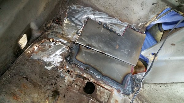 Még három rozsdafoltot talált, amihez hozzá kellett nyúlni. Felszedték a szőnyegeket, a padlót már javították, de ott nagyrészt rozsdamentes volt minden, leszámítva a jobb B oszlop környékét, ahonnan rövidesen kiszakadt volna az anyósülés. Felsikkant a flex, lemez kalapálódott formára, egy nap alatt megvoltak vele. Kiderült, hogy nemcsak a bal, de a jobb oldalon is rohadt a csomagtér két oldalsó öble, ráadásul a helyzet rosszabb, mint amilyennek látszott, mert a korrózió felkúszott a doblemezekre, sőt, a sárvédők hátsó csücskeire is. Itt aztán négy-négy elemmel kellett pótolni a szétmállott lemezt – még szerencse, hogy a csomagtartó többi része egész jól egyben volt.