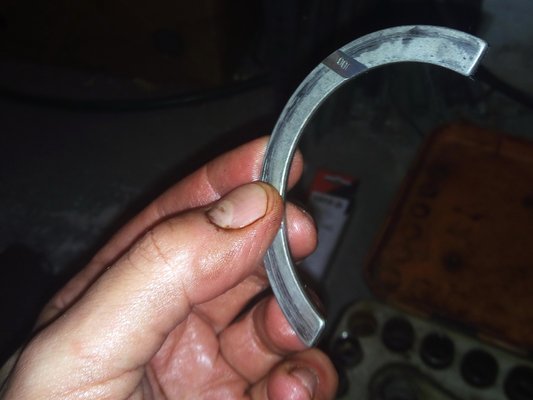 Így is lett. A kocsiból kivett két támcsapágy 2,30, illetve 2,31 milliméteres volt a digi tolómérő szerint. Az újak 2,35-2,36 között voltak. Belepróbáltam a két alapméretes újat, enyhült, de nem szűnt a kotyogás – tehát már nemcsak a csapágyak, de a főtengely is kicsit kopott. Elő a varázspálcával, ami jelen esetben egy félkör alakú, kellemetlen színű vasdarabkát jelentett, alias túlméretes támcsapágy. Nem fér be. Itt egy kellemetlenül hosszú epizód következik, melynek részleteiről inkább nem számolok be.