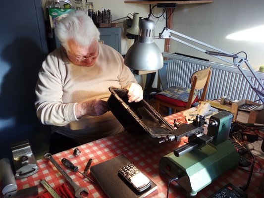 Az olajleeresztő csavart egy tűreszelő segítségével hamar visszaalakította eredeti formájába (sajnos nincs 22x1,5-os menetvágóm és –fúróm, csak 22x1-es, illetve 20x1,5-ös, szabadkozott), a kormányhoz megtervezte az agy-közbetétet, a vákuumdobra ránézett, és kimondta a fatwát – forrasztható, ha jól csinálom, tökéletes lesz.