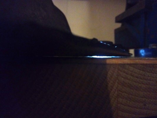 Mindegy, helyre került, aztán vagy egy órán át a lávává ragasztott olajteknőt pucolgattam a régi tömítéseitől, majd – miután a klasszikus, zseblámpával átvilágítós módszerrel megnéztem, mennyire egyenes – kalapáltam is egy darabig. A Pontonból maradt, kiváló, ki nem keményedő, terosonos teknőtrutyival szigetelés alatt és felett megkentem, mehetett fel.
