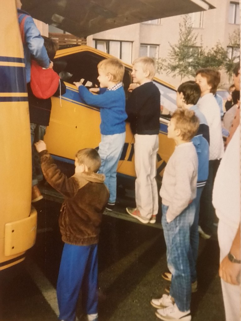 Budapest; 1988 környékén. 3 évesen a volán mögött az autóbusz típusa Ikarus 256os. Éppen apukámtól kérdeztem valamit miközben a váltóra mutattam. Végül apukám olyan sokáig hagyott a vezetőülésben, hogy a buszvezetés lett a gyerekkori álmom. Ennek köszönhetően 11éve buszvezetőként újból visszaülhettem a vezetőülésbe...
