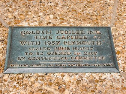A kocsi egy 1957-es évjáratú Plymouth Belvedere volt, mindössze négy mérfölddel az órájában. Tulsa városa kitalálta, hogy megmutatják a 2007-es év lakosainak, milyen autókkal jártak ekkoriban az emberek. A kesztyűtartóba bedobták az autó kulcsait, egy doboz cigit, egy női táska ekkoriban jellemző tartalmát, és egy kifizetetlen parkolójegyet. A csomagtartóba bekerült pár doboz sör, és négy gallon benzin, hátha a jövőben már nem lesz üzemanyag, amivel be lehetne indítani. Ástak egy nagy gödröt, kiöntötték körben betonnal - ami elvileg atombiztos volt -, majd mehetett bele a kocsi fél évszázadra megpihenni.