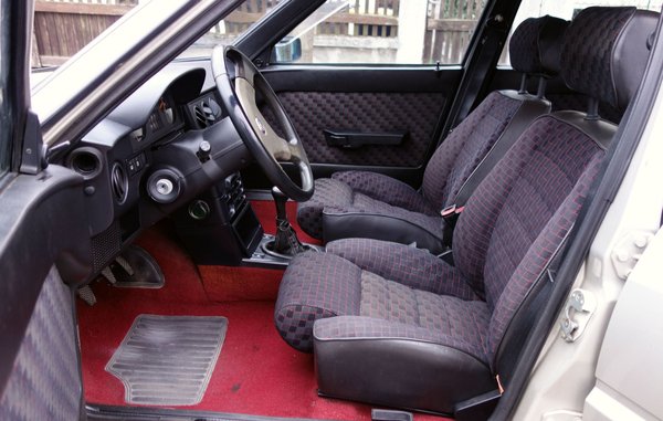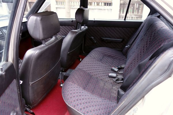 Persze nem csupán olvasói adakozásból épül ám az Alfa. A vásárlás napján vett felniket közben egy kisebb vagyonért megcsináltattam, most friss szinterrel és egy szett tűrhető gumival felszerelve várják, hogy gurulhassanak. Vettem egy szakadt belső teret is a birtokba érkezésem első napjaiban, amihez járt két szakadt gyári első ülés meg egy rakás ajtókárpit is. A csátaljai Albert István meghámozta nekem a hátsókat, s érzékkel átrakta az elsőkre az ép szövetet. Már be is szereltem a garnitúrát, le is vettem a randa, szürke huzatot a hátsókról, végre egész tisztességesen néz ki a kocsi bele, nem?
