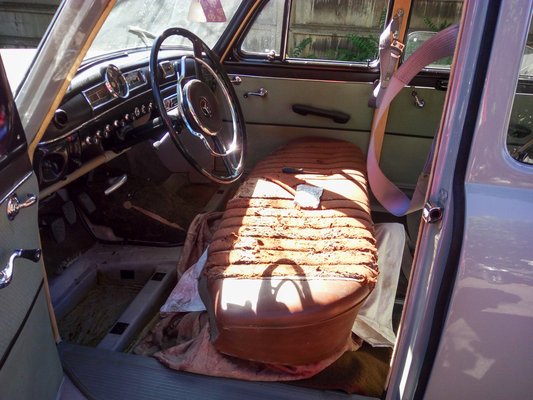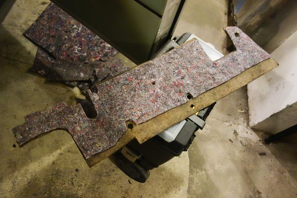 Miután megint magamra maradtam, mindenből elkészítettem a duplikátot (a váltóharangból hangyányit nagyobbat, mert a második réteg nagyobb rádiuszon fekszik fel), a rétegeket összeragasztottam, majd a váltóharang kétdimenziós szigetelését még koporsóformává is ragasztottam össze, mert helyben szétnyomná a tetejébe kerülő gumiburkolatot. Legyártottam a műszerfal alatti papundekli lemezek új szigeteléseit is (ezekben volt a legtöbb molylárva anno), s összeraktam a kocsi belét. Nem azért mondom, de igencsak elégedett vagyok vele. Korhű, szépen takar, az eredeti formát követi mindenhol minden, Stuttgartban sem csinálták jobban.
