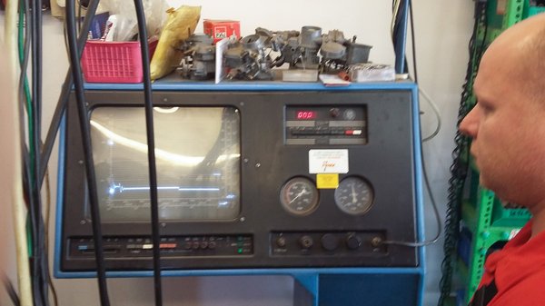 Úgyis a napokban döntöttem el, hogy most már elkészült annyira, hogy lassanként elkezdem szervezni az eladását, csak még megvárom, mit tesz vele a karburátoros, akit az egyik kommentelő javasolt még a múltkori poszt alatt. Szakályék műhelye Zuglóban van, tőlünk tíz percre gyalog (autóval kettő), a BVSC-pályához közel, ahol Nagy Lajos királyunk az M3-as felé fordítja a flotta orrát. Már régebben bejelentettem a kocsit, mert tűrhető lett ugyan kétévnyi szenvedéseim nyomán, de jó nem. Erős előgyújtást kellett adnom neki a gyári értékhez képest, hogy rendes ereje legyen, de olyankor alapjáraton pufogott, rángatózott a motor. Innen a gyújtást az ideális felé tekerve kisimult ugyan az alapjárat, de vele ment a póver is, én meg már nem találtam jobb beállítást. Innen mérőműszerre, igazi szakemberre volt szükség, nem ilyen önjelölt csodabogárra, mint én.
