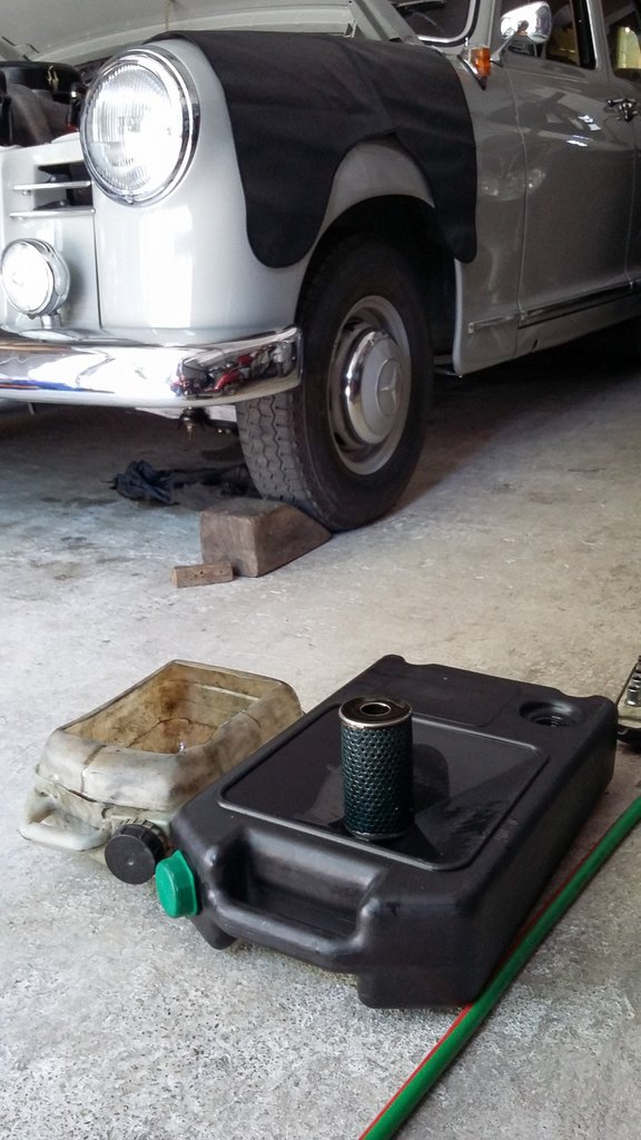 Akkor most szerezz nekem olajszűrő-házat egy 1962-es, benzinmotoros Ponton Mercedeshez. Ugye? Szerencsére Karesz kinyomozta nekem, hogy a 170-estől a fekvőlámpás benzineséig minden benzines Mercedesben ugyanaz a ház volt. Mindjárt könnyebb – de nem könnyű feladat. Végül Kozma Zsolti dobta be az ötletet (akkor még teljesen időben volt a saját 230.6-osával) - „te, az én egyik tartalék blokkomon pont ilyen van”. Dehogyis Zsolti, csak a négyhengereseké egyforma...