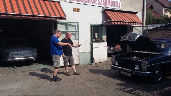 Tehát lett hirtelen két, bejáratós motorú, nem tudjuk még, mennyire jól karburált, öreg Mercedesünk az útra – no meg Háda Szabi csodásan rendbe tett 230.6 Langja (ami nem Pullmann, hiszen az csak a 600-as). És csatlakozik hozzánk még egy-kettő Győrben. Majdnem kétezer kilométert kell megtennünk, tehát bármi megtörténhet – én ennyit egyben még biztos nem vezettem a Dezsőt, hiszen amikor 2010-ben haza akartam hozni, és Dánia végénél lerohadtunk, még csak valami 1400-at mentem vele. Bevallom – most azért aggódom. A családunk egész vagyona, egy rakás adósság és hét évem van ebben a kocsiban, és bármilyen jól is megcsináltunk mindent, nem érzem 100 százalékosnak a felkészültséget. Bár ahogy elnézem a Kozma Zsolti 230.6-osát – ott még hézagosabb az ügy...