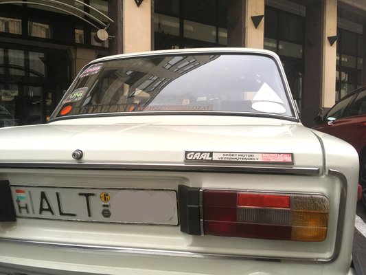 Ahogy lassítottam a motorral, észrevettem a furcsa feliratot a csomagtartón. Nem az volt ráírva, hogy Lada 1600, vagy Lada 1500s, esetleg Zsiguli (cirill betűkkel), hanem a Gaál logó, meg még valami volt az emblémán. Létezett ilyen Lada-embléma? Nézzük már meg közelebbről. Más kollégákkal ellentétben nekem nincs Zsiguli-becsípődésem, de eleve ez az egyik legkedvencebb Lada-formám (a csúcs a szememben az ezerkettes kombi, azt bármikor ölelgetni tudnám), ritkán látni ilyesmit az utcán, gyorsan körbe is néztem. És ahogy egyre több részletet láttam, úgy lettem egyre értetlenebb.