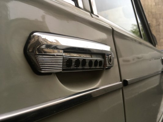 Sehol elhanyagoltságra utaló méretes rozsdafolt, a kéderek és a díszlécek sincsenek összefújkálva festékkel. De nem gyári a fényezés, és láthatóan több helyen foltokban is javíthatták a kasznit meg a fényezést is, a kasztni vonalai ezzel együtt is szépen futnak. A hátsó lámpa kristályszerűen kirepedezett, fakult a színe, de a fényezés csillog. A Gaál-műhelyben készített tuning-motorra utal a típusjel helyére ragasztott felirat, de az első szélvédőn meg ott a piros matrica: az autó cseppfolyós gázüzemre átalakítva.