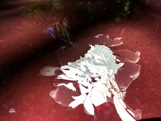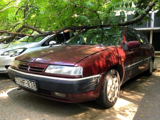 Délutánra már csak a behorpadt tetejű Citroën állt ott, a másik két autó helyén újabbak parkoltak. A Xantia láthatóan akkor se nagyon menne sehová, ha nem veri telibe a faág: a gépháztetőn két jókora dudor árulkodik, őt is utolérte a típusbetegség. Először azt hittem, a nagy ütéstől szakadt át a toronynál a rugó, de a sérülést jobban megnézve úgy tűnt, nem friss a motorháztetőn a púp-pár. Szegénykém, neki ezennel bevégeztetett. Még egy igazi, hidrós Citroënnel kevesebb.