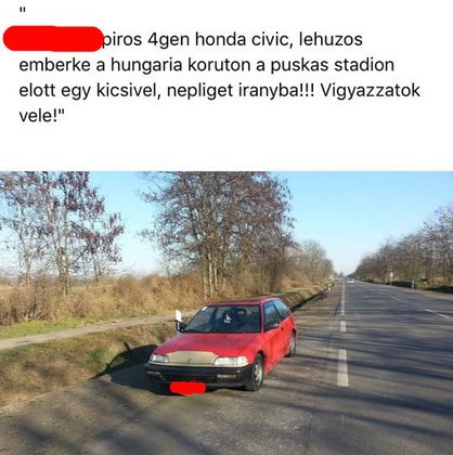 A kamugép persze foglalkozásszerűen űzi ezt a dolgot, már akkor sokan jelezték, hogy itt vagy ott látták. Én is sokszor találkoztam vele a belvárosban, akkor még fotó nem volt róla, de a fehér Civicet nem volt nehéz megismerni Tibi leírása alapján.