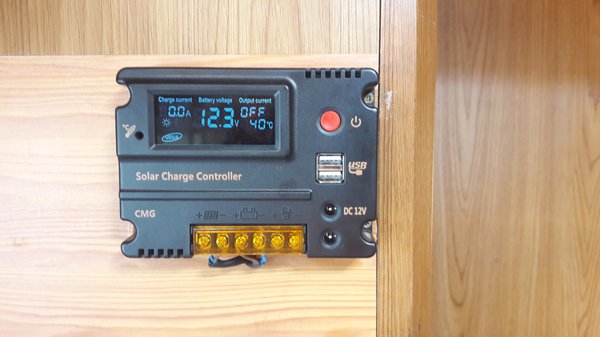 A napelemes rendszer majdnem készen volt, az agy hiányzott egyedül, a töltésvezérlő. Feladata nem túl bonyolult, a napelemek 36-38 V-os kapocsfeszültségéből akkumulátortöltésre alkalmas feszültséget kell létrehozni az áramerősség megfelelő szabályozása mellett. Most kihagyom a neves gyártó katalógusából építkező geget, Kínából megrendeltem egy olyan darabot, aminek a vásárlói értékelése is díszes volt: 8000 forintot kértek érte. Mire figyeljünk a töltésvezérlőknél? Az egyik legfontosabb kritérium a kezelt áram erőssége. 20 amperest vásároltam, annak dacára, hogy 5 amper fölé nem fog menni a töltőáram. Ezt a bővítés lehetősége és a melegedés elkerülése indokolta. Az LCD kijelző, a kiegészítő 12 voltos kimenetek és az USB csatlakozók hasznos extrák, engem el lehet varázsolni ilyesmivel.