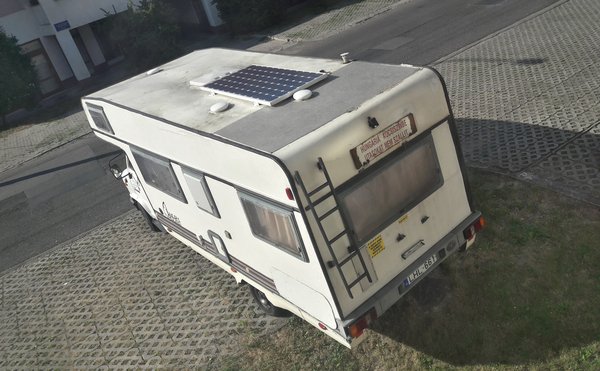 Fontos a vízzárás, a korosabb lakóautók halála a beázás. Hajósboltban vettem olyan anyagot, ami távol tartja a vizet és nem feszül meg a jelentős vibrációtól és hőingadozástól. Eltelt jó néhány óra, amíg rögzült a napelem és bekötöttem az elektronikát. Karcok, sérülések és veríték kövezte utunk végén édesanyám lecsója tündökölt oázisként. Ebéd után a maradék kábel is a helyére került, feléledt a zöldenergia függetlenségi mozgalma. A rendszer összeállt, működik, csak ott hibáztam, hogy mindkét akksi teljesen fel volt töltve, ezért a vezérlőelektronika bemutatott nekem és nulla ampert fordított az akkumulátorok töltésére. Valamelyik nap majd merítek egy kicsit rajtuk, mert igazán kíváncsi vagyok rá, hogy mekkora áramot tud leadni a napelem éles bevetésben. Beépítés előtt itthon összeállítottam a rendszert, reggel hét óra környékén, az erkélyre kitámasztott napelem másfél ampert produkált, pedig félig eltakarta az erkélykorlát. Azért ez nem rossz érték.