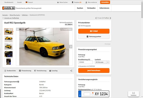 A szerkesztőségben túltengenek az Audik, Papp Tibi és Szimós Zsolti is ilyennel jár, de persze néhány egzotikus műszaki megoldás miatt (öthenger, torsen diffi) az Audinak amúgy is különleges helye van azon a bizonyos polcon. Az RS2 régi kedvenc, egyrészt érvényesül benne a sleeper hatás, vagyis amíg csak elvillan a forgalomban, senki meg nem mondja, hogy egy Porsche által hevített 2,2-es, öthengeres turbómotor viszi, másrészt egy 320 lóerős, összkerekes kombi sosem lehet rossz. A nyolcvanas évek végén-kilencvenes évek elején a Porsche komoly anyagi gondokkal küzdött, így mérnöki és gyártókapacitását bérbe adta. Az egyik így született autó a W124-es Merciből faragott baltás gyilkos, az 500E, amiről sokat elmond, hogy szélesíteni kellett a kardánalagúton, hogy V8-as motor és a váltó valahogy beférjen. Vezettük, gyilkos. A másik ilyen gép az RS2-es Audi, amely tulajdonképpen egy 80-as kombi, de több benne a Porsche alkatrész, mint az Audi. Természetesen erre Zsolti kívánt rá, és különösen ez a kanárisárga (speedgelb) darab annyira az ember arcába mászik, hogy akkor is kéne, ha csak egy 125-ös kétütemű lenne a motortérben. Ezt ráadásul 2014-ben elképesztően alaposan felújították, még valami skandináv Audi találkozón is díjat nyert. A fájdalmas pillanat az, amikor az ember meglátja az árat: 55 ezer euró, az némi apró híján 17 millió forint. És itt estem gondolkodóba én.