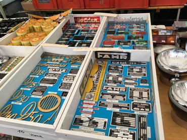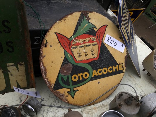 Autós és motoros kegytárgyakból nagyon durva a felhozatal, régi poszterek reprói, utángyártott zománctáblák, ruhadarabok, szuvenírek, minden van. A zománctábláknál kérdéskörénél érdemes egy pillanatra megállni. Sok helyen látni kartonlapra kasírozott papírnyomatokat, amik megszólalásig hasonlítanak az eredetikre. Nem kimondottan olcsók ezek, de nem is vág senkit a földhöz az áruk, pár ezer forintért már hónunk alá csaphatjuk őket. Aztán vannak a régi technológiával, fémlemezre, tűzzománccal felvitt dekorú táblák – na ezek már büszke összegekért cserélnek gazdát, ezekből az ember már nem fog tucatjával hazavinni.