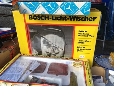 Utángyártott új, meg dobozában megőrzött régi alkatrészeket, autós extrákat is lehetett mindenfelé látni, aki a Deutz/Lanz/Fendt traktorához keresett patika állapotú váltógombot, vagy esetleg az állólámpás Mercedeséhez Hella-gyártmányú fényszórómosót, az örömmel nyugtázhatta, hogy van ilyesmi a piacon. Mondjuk az utóbbit nincs élő ember, aki be merné szerelni autóba, hiszen így, eredeti dobozában képvisel igazán komoly értéket, 1000 Eurót kértek a szettért.