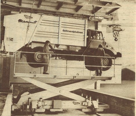 Amikor a svájci Wallisban elhatározták, hogy kombinált személy- és teherszállító kötélvasutat építenek a Bettmeralpra, akkor úgy döntöttek, hogy a hegyről a völgybe való szemétszállítást is a kötélpályán végzik. A körülményes és költséges átrakodások elkerülése végett a szemétgyűjtő autót a kötélvasúti kabinra függesztve szállítják.”