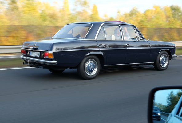 Zsolti a tőlem kapott pénzzel gyorsan kiugrott Franciaországba megvalósítani régi vágyát, egy 108-as Merci birtoklását – ez az a barokkos, Fecske-alapú nagy-Mercedes, amit a hatvanas évek közepétől a hetvenes elejéig gyártottak, s tényleg olyan, mint egy Rolls-Royce, még a műszerfala nagy része is tömör fa, s ha további hitelt kell neki szerezni, akkor annyit mondok, Sipos Zoli barátomnak is ilyenje van, ami helyből a Hall of Fame-be szögezi a típust.