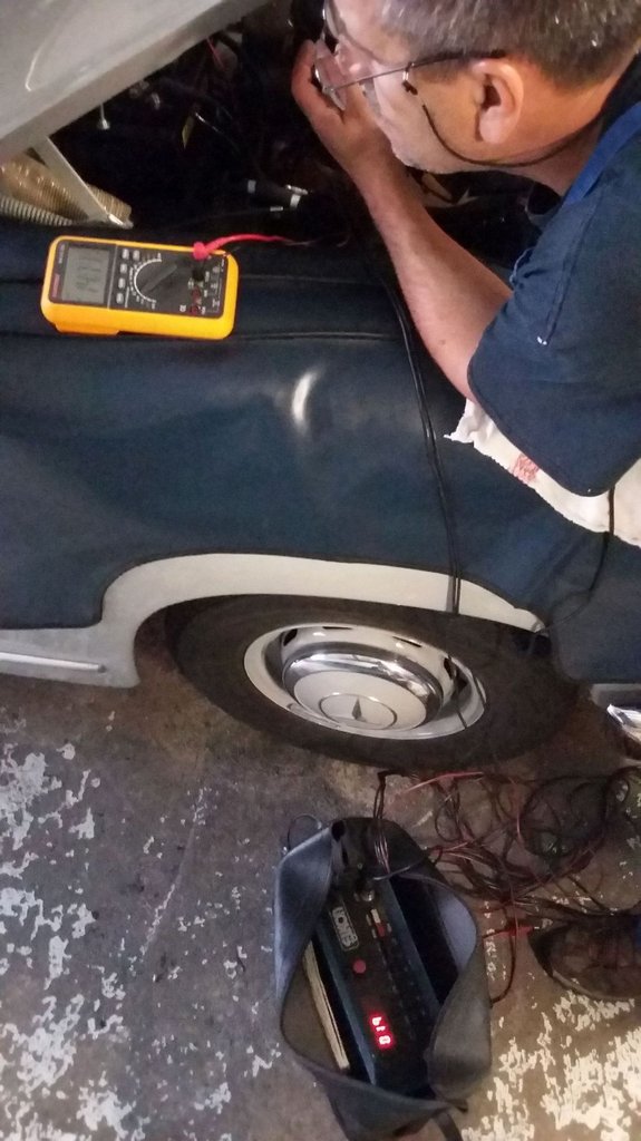 Mindegy, ez alkalommal végre jó lett, a töltés alapjáraton biztosan lekapcsolt - a dinamót ugyanis le kell választani kis fordulaton, mert onnantól az akku akarja forgatni rajta keresztül a motort, ezért is gyullad ki a régi autókban a töltésjelző alapjáraton, és ez úgy van rendjén. Fordulaton is végig hozta a 14 volt körüli értékeket, stabilan. És ezzel a dinamóval végre Csabi is nyugodt, mert szerinte is jó rajta a tekercselés – hiszen az a gyári és hiába nézett ki csúnyán a szerkezet a felújítás előtt, odabent meglepően jó állapotban maradt meg.