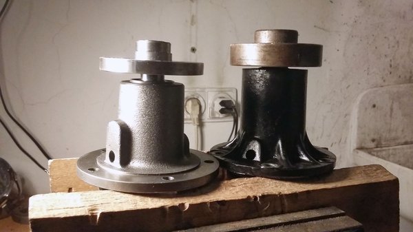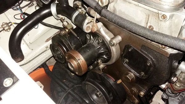 A vízpumpát is kiszereltem, megnéztem, és mivel nemcsak a csapágy sípolása idegesített, hanem a melegedés is, amit részben a kopottas turbinának tudtam be, ezért a teljes csere mellett döntöttem. Megrendeltem eBay-ről a vadi újat, hát nem valami rövidebbet küldött a német? Pedig ott volt a leírásban: gibt für Ponton, szemre is olyan volt, csak hát az a 15 mm-es különbség a hosszban... Mehettem hát Fűrész Feri bácsihoz közdarabot készíttetni, mert az nem megy, hogy az ékszíj kétszeres S-t vessen forgás közben, hiszen úgy nem marad a helyén. Annyiból volt meg a művelet, mintha visszaküldtem volna Németországba a kapott szivattyút, de ezt legalább ezt odapróbáltam, és tudtam, hogy más tekintetben teljesen stimmel.