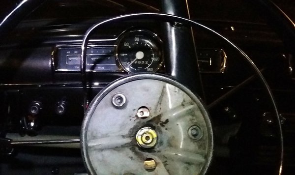 A zengő rugóra vízcsőből vágtam ráhúzható csillapítást, a süketséget kedvelő kürtöt pedig végtelenül egyszerű volt szóra bírni. Mint már sokszor leírtam, a Ponton műszakilag egy feleslegesen komplikált jármű, afféle egyetemi oktatóeszköz - például a kürtgyűrű kör-érintkezőjének a magassága is finoman beállítható a kormányoszlopon a kormányközép lyukain át. Egy percig tartott a finomhangolás, tökéletes lett, most bárhol hozzányúl a karikához az ember, megszólal.