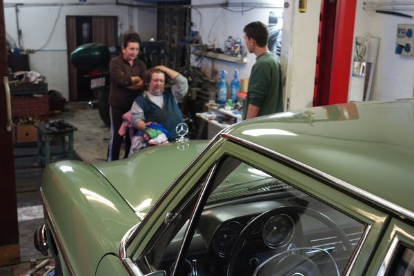 Sanyi barátom, aki szintén karosszériás, méghozzá csodás, már évek óta állandó csúszásban van, ezt megszoktam, ezért nem is ő lakatolta a Szent Szobrot – akkor találtam egri Csabit. Az egy évre bevállalt haveri autó nála három alatt készül el, a másik meg még sehogy sem áll négy év után. Rosszabb a helyzet, mint bármikor előtte, őt ugyanis megtalálták a német veteránosok, először csak egy ajtóval itt, egy sárvédővel ott, aztán rábízták egy Fecske-Merci szedánjának kombivá szabását. Amikor meglátták azt a munkát, ráborították az egész gyűjteményüket, ami amúgy folyamatosan gyarapodik. Sanyi a múltkor csak annyit mondott – szerintem én már az életben nem vállalok magyar melót...