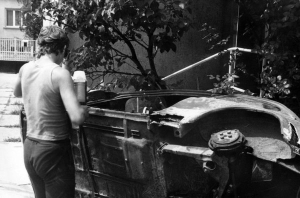 A rémes első autómat, az akkor tizenöt éves, de már porrá rohadt Fiat 500-ast hegesztettük Wéber Győzi barátom nagybátyjánál, Ertl Pityuapunál – azért ott, mert az ezer forintnyi összvagyonomból, ami nyár elején volt, csak ingyenmunkára telt. Pityuapuéknál laktunk tehát Tata-Kertvárosban, az autót a kertben faragtuk vagy egy hónapon át, készítettük elő hegesztésre. Amikor eljött a nap, hogy felmenjenek a Váci úton vett küszöbprofilok (azt hiszem, azzal kezdte az ipart a Szegvári Viktor), Pityuapu éppen valami távoli helyszínen melózott a csőszerelő csapatával, s a segédjére bízta a melót - amiért beígértem két egész üveg Kőbambit. A srác profi csőhegesztő volt, olyan varratot tudott készíteni, amilyet Audi-műszerfalon nem lát ma az ember. De hozzá volt szokva, hogy profik veszik körül.
