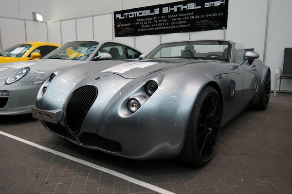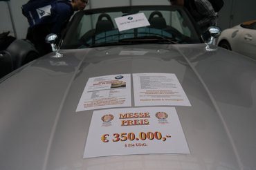 A cég standján mondanom sem kell, csupa elhasznált tömegautó állt. Ott van például a Wiesmann MF4, ez 4,4 literes, 507 lovas BMW-motorral tényleg egy széthajtott darab, van benne vagy 10 ezer km. Oda is adják 200 ezerért.