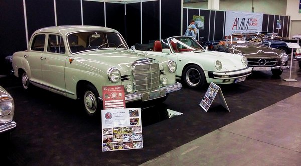 A csávó elkezdte nekem magyarázni, hogy drága a Ponton, mert a hollandok dobálják ki a veteránokat egy újonnan bevezetett adó miatt. Ő például harminc éve foglalkozik Pontonokkal (aha, innen ért hozzájuk!) és most vett a feleségének egy 190-es, vászontetős Pontont Amszterdamban 7000 euróért, amit hazahozott, átvitt a vizsgán minden javítás nélkül és most az asszony használja. Erre mondtam neki, hogy ez az autó 5400 euró volt, amikor én megvettem Svédországban, vizsga volt rajta, autóztam vele majdnem kétezer kilométert, mire szétesett, de ettől jó még nem volt. Ezért az ő 7000 eurós Pontonjának és az én kocsimnak árban semmi köze nincs egymáshoz. Hümmögött, de a haverjával azért még ötször körbejárták az autót. Ott állt mellettem Valker Viktor (ők egy Aston V8-ast hoztak ki eladni), s megjegyezte – ezek a börze végén még visszajönnek és meg fogják venni. Úgy legyen. Mindenesetre búcsúzóul a szakértőbbik csávó megjegyezte – tény, hogy ez a legszebb négyhengeres kis-Ponton, nemcsak Essenben, de talán az országban is. És a színe is jó, igazi prospektus-Ponton így (nesztek nektek, szürke-utálók...).