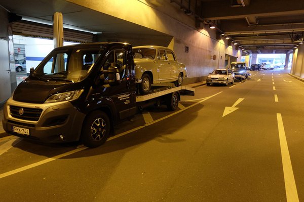 Odakint még néhány pillanatig azért úgy tűnt, a Ponton lábon megy Essenből Berlinbe, mert közbejött egy kis logisztikai gubanc. Naményi Peti ugyanis akkor jött rá, hogy ő is tervezte kivinni a saját BMW M3 Cecottóját Essenbe, amikor kapta tőlünk a telefont, hogy kölcsönkérnénk az autószállítóját. Mivel korábban megígérte, hogy ha szabad, vihetjük, nem akart feneket csinálni a szájából, ezért tartotta a szavát, sőt, még ellátott minket vadiúj spaniferekkel, Varta-fejlámpával, mindennel. Ő meg, jobb híján, lóhalálban szervezett magának egy helyet a szalonon (döbbenet, hogy talált, mert ha emlékeztek, olyan már nekem alig akart lenni, a másfél héttel korábbi starttal), majd elcsípett egy tujázós helyet valami kifelé tartó autószállító utolsó csücskében, és úgy kijuttatta az M3-at. Azt gondolta, jó az ár, szuper a minőség, az autót tuti elviszik. Csakhogy nem vitték el.