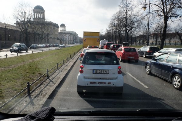 Innentől sziklaszilárdan megmakacsolta magát, így alakult, hogy másnap reggel, egy alapos közértezés után, tök egyedül indultam Mettmannból Berlinbe az autószállítóval. Ahogy elhaladtam Hannover, Münster mellett az északi íven, 130-140-nel előzve a közlekedők andalgóbb felét, arra gondoltam: egy ilyen modern, hátul légrugós, sávelhagyás-figyelős, nagy klímás, nagy zenés, tempomatos Ducato, agyig málházva is olyan biztonságosan, nagyjából olyan fogyasztással (13 l/100 km), talán még nagyobb kényelemben is mozog a nyomorult kis kétliteres dízelével (ami azonban 180 lóerős), mint egy 25 évvel ezelőtti, kényelmes nagykocsi. Vagy még otthonosabban. Elképesztő, hova jutott a technika. De ettől még ugyanúgy szeretem a veteránokat, vagy még jobban, mert azokban maga az utazás is értelmet nyer, nem csak egy klimatizált „mikorérünkmároda”-várakozás az egész túra.