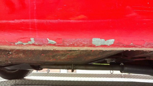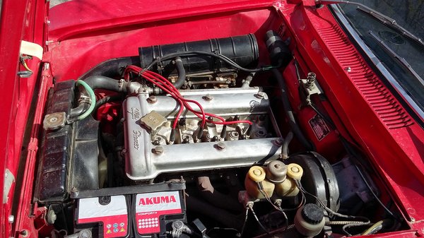 Amit tudok vagy láttam: az autó eredetinek tűnik, 25 éve egy szokvány olasz felújításon esett át, a kitt már pár helyen repedt, itt-ott vannak pörsenések, akad, ahol már csúnyán beszívódott a kitt, a bal ajtó és a hátsó sárvédő kicsit meg van húzva, a bal ajtó kicsit lóg, nehezebben csukódik. Nagy törése szerintem nem volt, talán a hátfal gyanús kicsit, de a csomagtérpadló egyenesnek tűnik. Amikor az ember felújította, vett rá két új lökhárítót, egy új tetőkárpitot is, de hogy azt minek, nem tudom, mert a benne levő is szép, csak koszos. Majd eldöntöd, hogy kipucolod-e, vagy cseréled. A kesztyűtartó dobozát kiszedték, nyilván nem azért mert mindene jó, majd annak is utána kell járnod, hogyan lehet visszatenni.