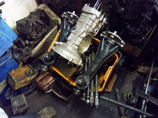 Szóval a zöld Puch folyamatosan ott mocorog ám az agyam hátsó tekervényeiben, de csak lappangó üzemmódban, mert eddig se energia, se pénz, se idő nem jutott rá. Meg akadt még egy apró bibi az ügyben: a Puch lengőtengelyes hátsó futóműve (hiszen ez is Ledwinka-Hruska iskola) a váltóhoz kapcsolódik. A váltó pedig szerelés alatt áll. Váltó nélkül nincs lengőtengely, lengőtengely nélkül nincs kerékagy, kerékagy nélkül nincs kerék, tehát mindennek hiányában nem tudom levenni az autót a fényezőkeretről. Mióta is tart a váltó-gate? Úgy tíz-tizenkét éve. Hol? Ömmm, izé, a Tóth Gabi barátomnál. De MIÉRT nem szereztem még vissza? Hát, őőőő, szóval, őőő, merthogy, szóval lebontották a szervizt, beszántották sóval, egy pályát tévesztett észak-koreai automhüvely épp a házra esett, fémfaló sáskák jártak arra... Oké, megmondom. Mert nem tudom visszaszerezni.