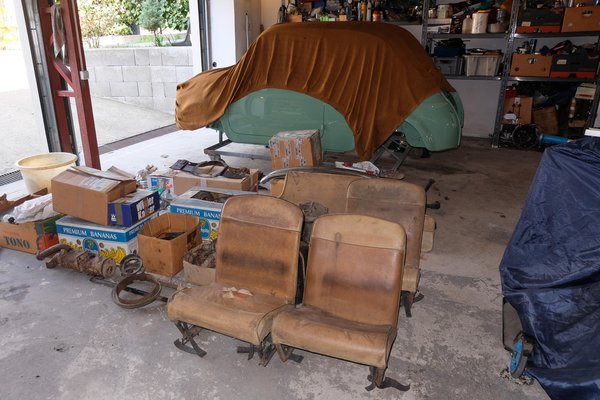 Első futóműbe való szilentből például hatot vettem, pedig kettő kell belőle. Van három első ülésem is. Körülbelül három és fél motorra való burkolatot találtam; a léghűtéses autókra ugyanis teljes lemezköpeny kell, ami a Puch esetében 15+2 részes, ha jól számolom. Kettő ide vagy oda, nem számít. Három műszerem, két jobb oldali kormánykapcsolóm, de csak fél bal oldali van, vagy egynek a törmeléke, nevezzük, aminek akarjuk.