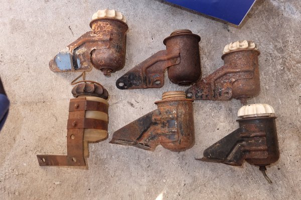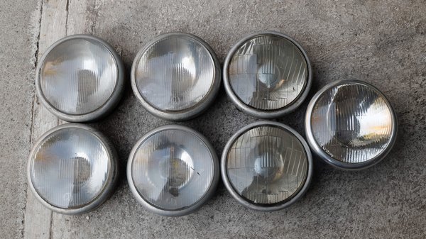 Fényszóróból egy csomagban hetet találtam, de aztán később előkerültek még. Sajnos így sincs olyan pár, ami megfelelne, mert a Puchnak háromcsavaros lámpaküblije van, de a készletben kétféle háromcsavaros aljú van, illetve akad, aminek teljesen hiányzik az alja. No meg az üveg se mindegy – a Carello feliratúakat nem értem, mert tudtommal Carello csak Fiat 500-ason volt, de annak nagyon nem ilyen a rögzítése, a Puch meg zkw-üvegeket használt. Talán átalakítottak egy Fiat-foncsort? Vagy csak az üveget tették át egy Puch-foncsorba? Senki nem adja már meg a választ. Ráadásul az én autómba a szimmetrikus kialakítású üveg kell, amilyen európai autóban nem volt 1960 óta, a nagy többség pedig aszimmetrikus. De mintha legalább két jó üvegem lenne is. És van legalább három jó küblim. A foncsorokat meg majd hozzájuk válogatom.