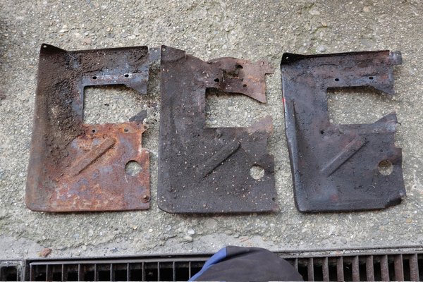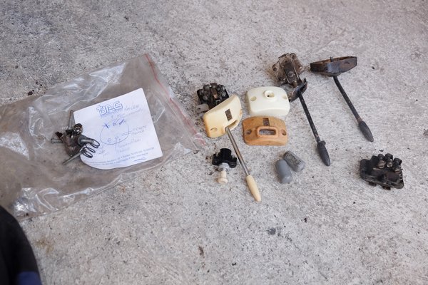Aztán ott a törmelékdomb. A dobozokban levő biszbaszok és baszinák, mind rozsdás, mállik, okádék, felismerhetetlen. A girbegurba, elrohadt kézifék. A szétlapított, majd újra háromdimenzióssá hajtogatott középső doboz, amiben a meleg levegő és a bovdenek áramlanak előre. Vagy hátra, mindegy is, hiszen például a bovden úgysem áramlik. Brutálisan szar állapotú itt minden, ezekből vegyek vajon újat? De nemigen találni... Vagy nem olyan rosszak, csak ügyes kezű karosszériás kell hozzájuk?