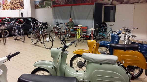 Bevásárlás után maradt időnk nézelődni is – látjátok, ezért is kellemes egy hatalmasnak látszó, de egyetlen délelőtt-kora délután alatt átfésülhető börze. A veterán parkolóból addigra már szállingózni kezdtek az autók, de az árus részleg még tömve volt. Alapjáraton billegős motorú, kétszínű állólámpás Merci 16 ezerért, s egy szerintem sokkal elegánsabb és eredetibb, de kicsit kopottabb 15-ért szinte közvetlenül mellette. Carlos Sainz-féle gömbölyű Celica 25-ért kellette magát (ó, ha meglenne a Ponton, szinte szőrén elcserélhettük volna), de a rozsdás, ecsettel festegetett, agyonkittelt, utolsó szériás Steyr-Puch 500S-t nem kérdeztem meg, mennyiért adják, mert nem volt mellette ember. Gondolom, valami 3-4000 euró táján mérhették.