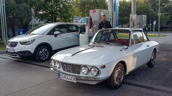 Ugyanezzel a Fulviával voltunk már egyszer ugyanígy a Seiberer Bergpreisen, a weissenkircheni veterán hegyi felfutón, de akkor az autó még nyers volt, mostanra viszont szépen összeért, állítható Konik lettek alatta, minden sokat finomodott. Kevés autóban volt valaha V4-es motor (hatvanas évekbeli Fordok és azok leszármazottai, Zaporozsec, volt még más?), szűk hengerszögű meg végképp semmi másban, ezért ennek a blokknak a hangját képtelen hova tenni a fül. Alapjáraton kissé sánta, mintha csak három és fél henger menne, kis fordulaton száraz, kipörgetve meg búgva dalol és kér még többet. Varázsa van a kretén gépészetnek, egészen lenyűgöző, ahogy egy ötvenegy éves szerkezet lazán lépi a százharmincat Bécs felé a pályán, majd amikor nagyon tolni kezd valami szokásos módon értetlen, szabadidőautós tulok, akkor szinte továbbugrik 140-re, 150-re és nem sorolom tovább, mert az osztrák rendőr is olvassa a Totalcart.