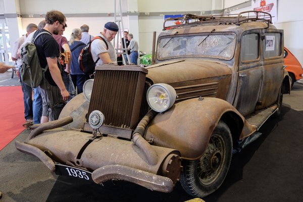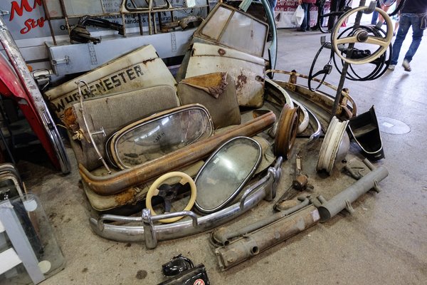 Odabent a csarnokokban pedig tényleg szörnyű volt a tombolás. Ott volt a hatnyolcas W109-es Rote Sau, az autó, amely az egész AMG-kultuszt elindította (vagy egy olyan), láttam egy magyarok által restaurált, szalonúj 356-os Porsche-kabriót, és tetten értem osztrák szakértőket, akik remegő hanggal magyaráztak felette, aztán ott volt a 170-es Mercedes-pickup, a Puch-klub standja, az osztrák, ismeretlen mikrokocsik gyűjteménye, illetve a háború előtti Renault mindenféle-Stellákat felvonultató placc, fókuszában az eredeti, szétrohadt állapotában fellelt, fagázasra átépített, valószerűtlen Vivastellával – tényleg szédült az ember, mert nem átlagos veteránkiállítást látott, hanem valami sokkal töményebbet.