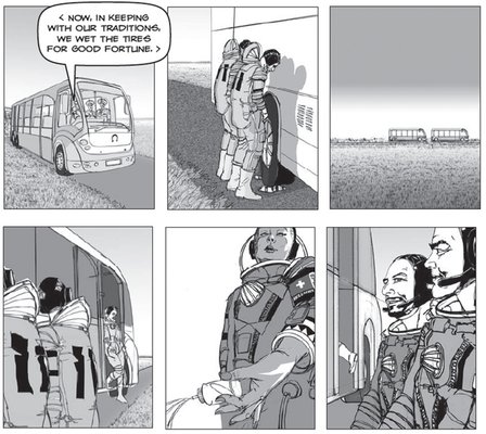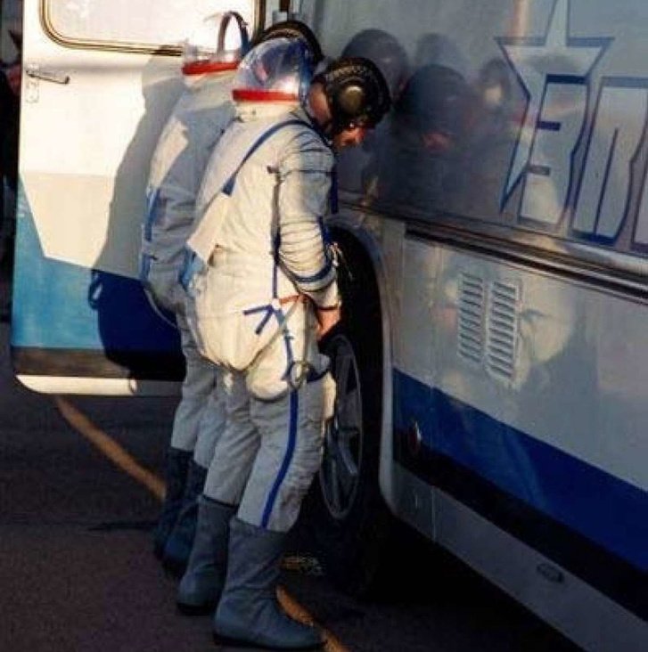 ...volt még egy teendőnk: le kellett pisilnünk a busz jobb hátsó kerekét, úgy, ahogy azt annak idején Jurij Gagarin tette. Ez itt már hagyomány, de valójában, ha valakit bezárnak egy űrhajó kabinjába, ahol jó néhány órán keresztül nem hagyhatja el az ülését, akkor ésszerűnek is látszik a dolog – Chris Hadfield kanadai űrhajós írja könyvében, milyen volt, amikor az oroszok fellőtték Bajkonurból.