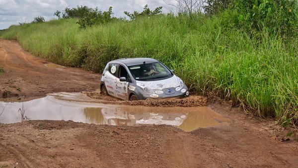 Az afrikai utak sem tették könnyűvé a három hónapos kalandot, bár meglepően sok aszfaltozott út jutott nekik, voltak szakaszok, ahol összkerekes terepjáróval se lett volna könnyű, nemhogy egy első kerék hajtású, alacsony hasmagasságú villanyautóval. A Kongo és Gabon közti 280 kilométeres szakaszt például négy nap alatt tették meg az esőben felázott földúton.